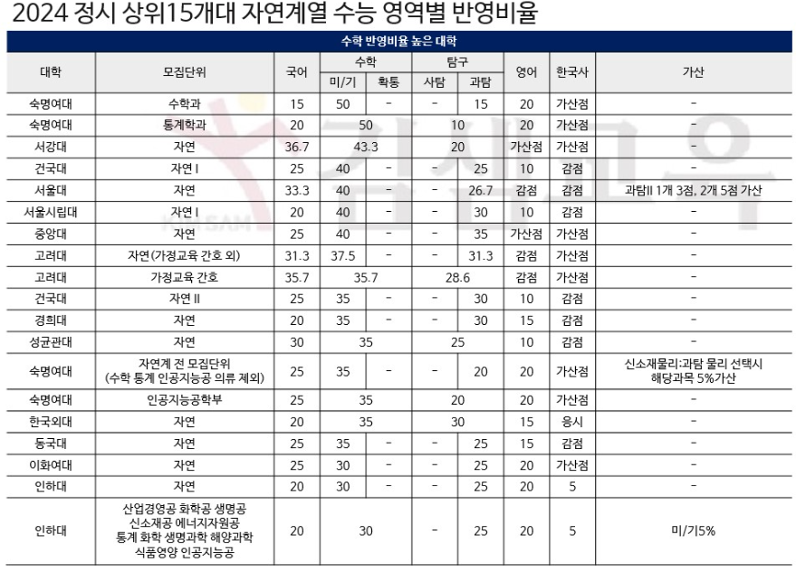수학 반영이 높을수록 유리할텐데 한국사 가산점도 챙겨가야합니다.